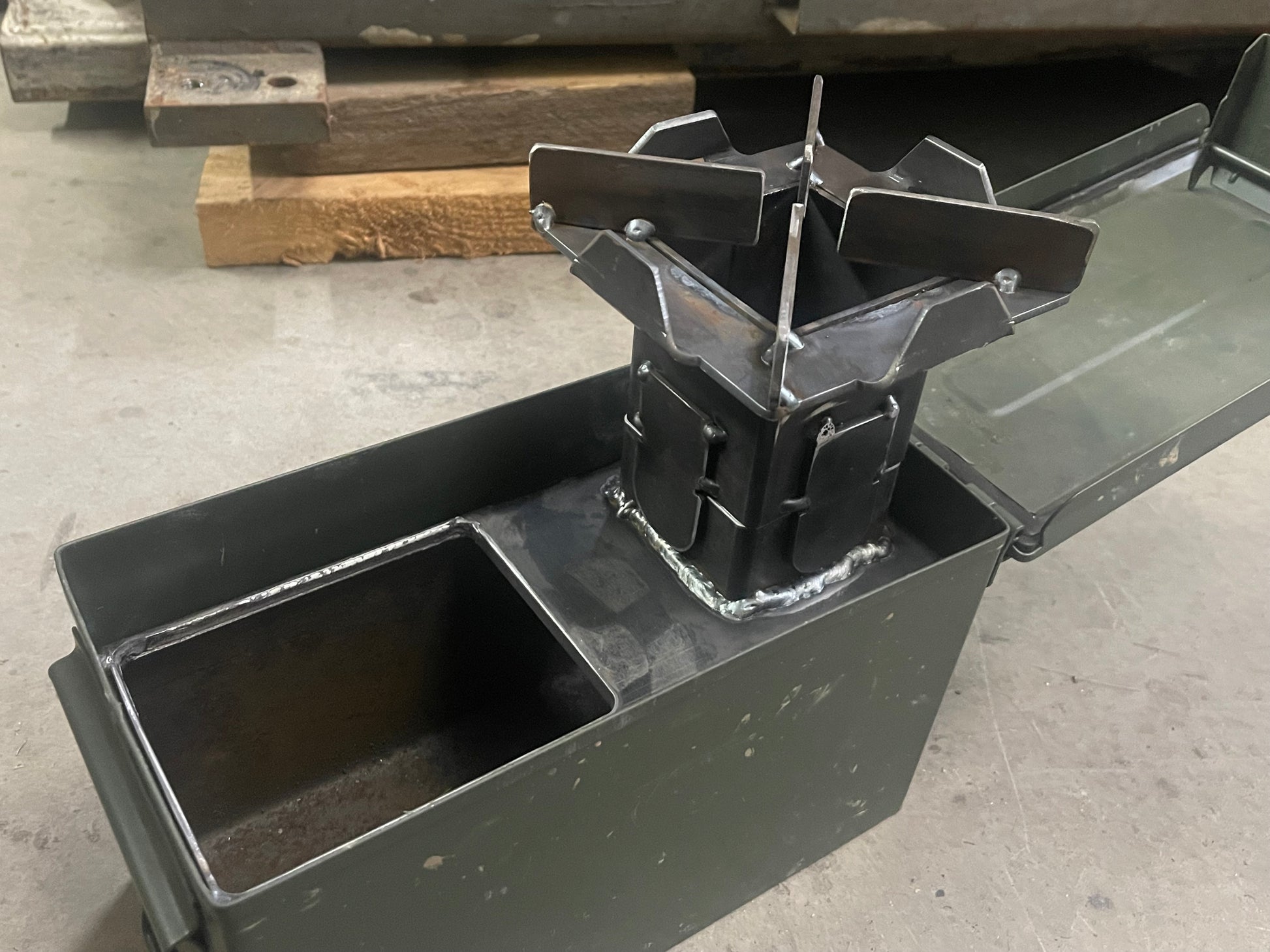 Portable Rocket Stove in a 50-Cal Ammo box.